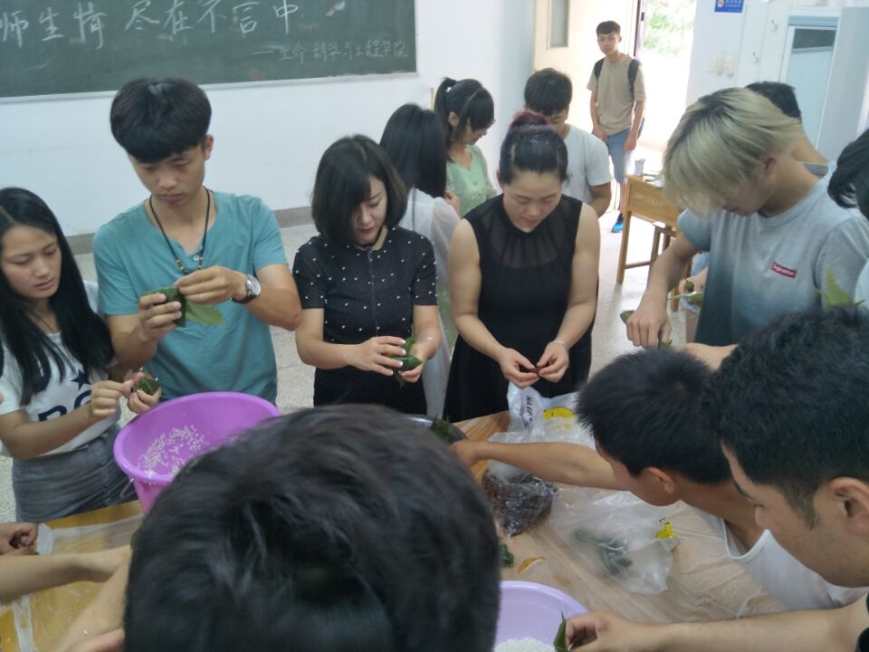 端午节与春节、清明节、中秋节并称为中国民间的四大传统节日。在我国素来便有端午佳节吃粽子的习俗。在此次活动中,betway西汉姆联平台师生们共聚一堂,开怀畅谈,同学们包粽子,忙碌而充实,整个过程充满了愉悦的气氛。生命科学与工程公司党总支副书记焦学然,团总支书记学工办主任卫琳娜老师及辅导员靳晓霞老师不仅为同学们送来了节日的祝福,更令同学们体会到了公司和院系对他们的关怀。