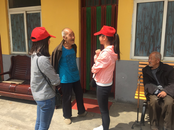 下午两点钟我们带着礼物到达了焦店敬老院,老人们正好午睡醒来,他们步履蹒跚地走出房门,在门外长椅上坐下晒太阳。志愿者们赶紧走上前去送上自己的关怀,老人们大多已经是七十岁以上的高龄,但身子骨依旧硬朗。虽然有些老人谈吐不甚清晰,但依然友善的对我们笑,把我们当做自己的孙子孙女一般,拉着我们的手嘘寒问暖,体现出了老一辈对年轻一代殷切的希望和关怀,还有一些老人高兴地与我们分享自己的年轻往事。还有些志愿者默默地开始擦窗户、扫地,为老人们做些力所能及的事。院子里洋溢着幸福与欢乐。