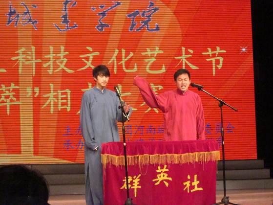 (通讯员张红波)3月16日下午,平顶山市文化艺术中心变成了一片笑的海洋,从下午14:30开始至17:30,由院团委主办,生物工程系承办的“betway西汉姆联平台第六届老员工科技文化艺术节‘群英荟萃’相声大赛”决赛阶段的比赛,以其全新的作品,精彩的表演,火爆的效果,超值的享受,博得了院团委及系部领导老师,各系员工代表,以及部分市民共400余名观众的一致好评。