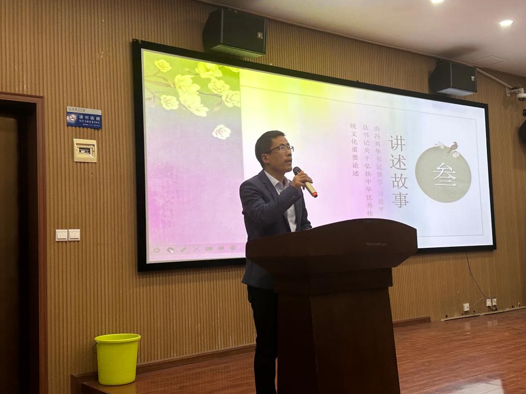 活动伊始,由主持人带领师生一起了解河南丰富绚丽的文化风貌。通过观看短片,让员工欣赏河南的自然风光和历史遗迹,感受河南人民对传统文化的传承和发扬,对河南丰富绚丽的文化风貌有更加深入的了解。“学模范”环节中,马怀智的先进个人事迹,让同学们深刻认识到何为奉献精神,并教会大家如何真正实现个人的价值和人生的意义。“学经典”环节中,冯兴华带领大家共同学习习近平总书记关于弘扬中华优秀传统文化的重要论述。“诵经典”环节中,张苏娅同学诵读《践行奉献精神,争做时代楷模》,鼓励师生忠于祖国,不怕吃苦,勇于实践,为实现中华民族伟大复兴中国梦而努力奋斗。“谈感悟”环节中,员工代表武美竹同学分享了自己对中华优秀传统文化的理解和体会。“送祝福”环节中,全体辅导员向同学们送上书签和祝福,此次文化讲堂活动圆满结束。