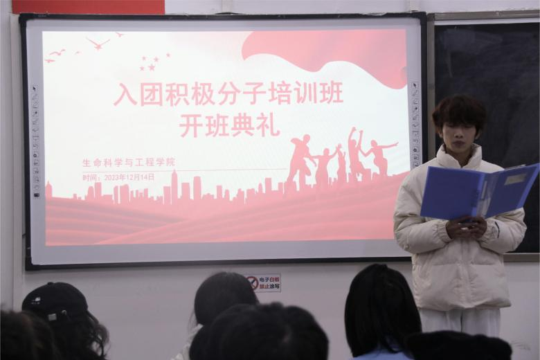 典礼在庄严的国歌声中拉开帷幕。首先,刘苹宣布本期入团积极分子名单,并发表致辞。刘苹表示,作为入团积极分子,一要端正动机,坚定理想信念;二要脚踏实地,保持思想和行动相统一;三要严于律己,发挥先锋模范作用。