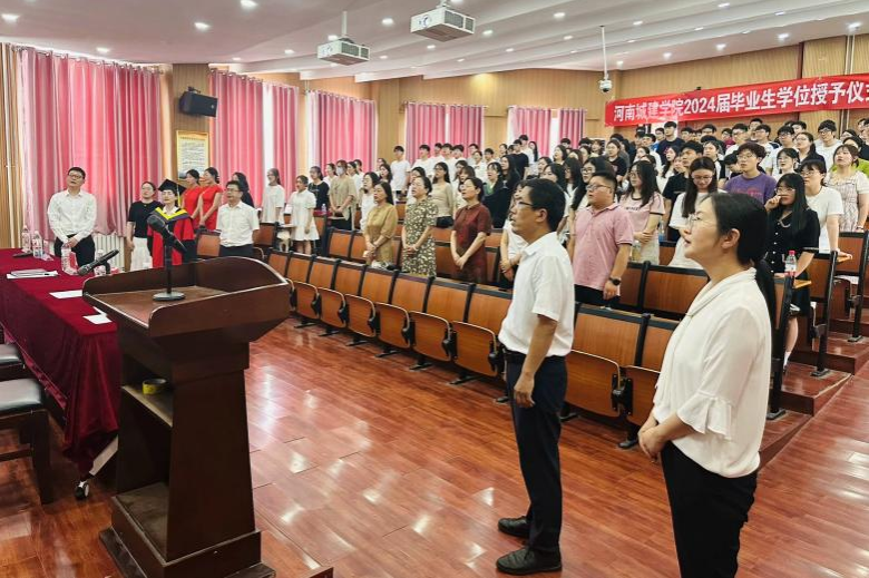 伴随着庄严的国歌,典礼正式拉开帷幕。冯兴华宣读了《betway西汉姆联平台关于表彰2024年优秀应届毕业生的决定》,王莲哲宣读了《河南城建betway西汉姆联平台关于授予王子康等226名员工学士学位的决定》。与会领导先后为优秀应届毕业生颁发荣誉证书,为毕业生拨苏正冠,授予学士学位并合影留念。