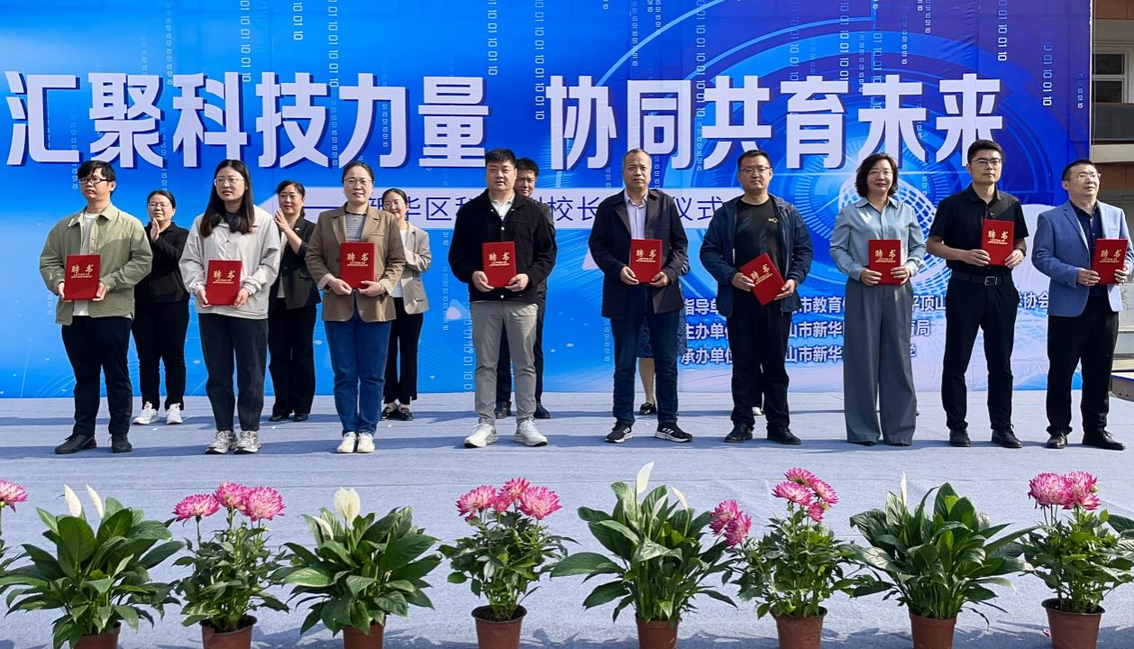 仪式上,betway西汉姆联平台被授予“平顶山市新华区中小学科普教育基地”、“新华区中小学科学教师培训基地”、“新华区中小学研学实践基地”三大教育基地称号;刘小飞、姬晓娜、赵美、刘东晓、弓路平、朱玉涛、吕玉英、张强八位骨干教师受聘为辖区中小学科学副董事长。