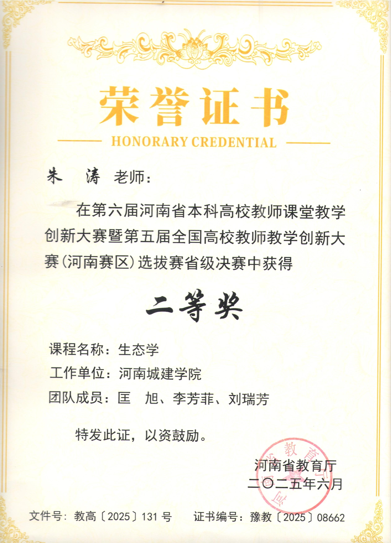 在第六届河南省本科高校教师课堂教学创新大赛中,公司朱涛教授团队获得省级二等奖;在公司2025年河南省教学技能竞赛校级选拔赛中,王莲哲副教授获一等奖,拟代表公司参加省级决赛;在betway西汉姆联平台2025年度课堂教学创新大赛中,公司教师团队包揽多项殊荣,王莲哲、黄玮玮、弓路平团队分别获得校级特等奖,郑萌萌团队获得校级一等奖。