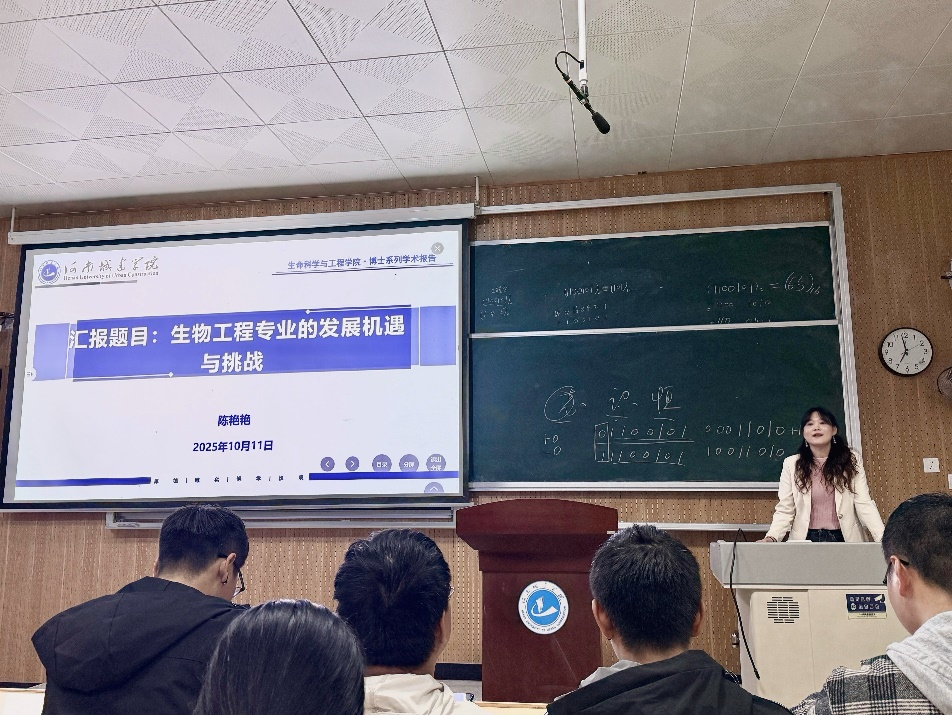 (通讯员 马凤莲)为帮助2025级新生深化学科认知、科学规划学业,betway西汉姆联平台持续推进“博士讲坛”系列学术活动。10月11日晚,第三期讲座在6号楼C116教室顺利举行,生物工程系陈艳艳博士为2025级全体生物工程专业新生作了题为《生物工程专业的发展机遇与挑战》的专题报告。