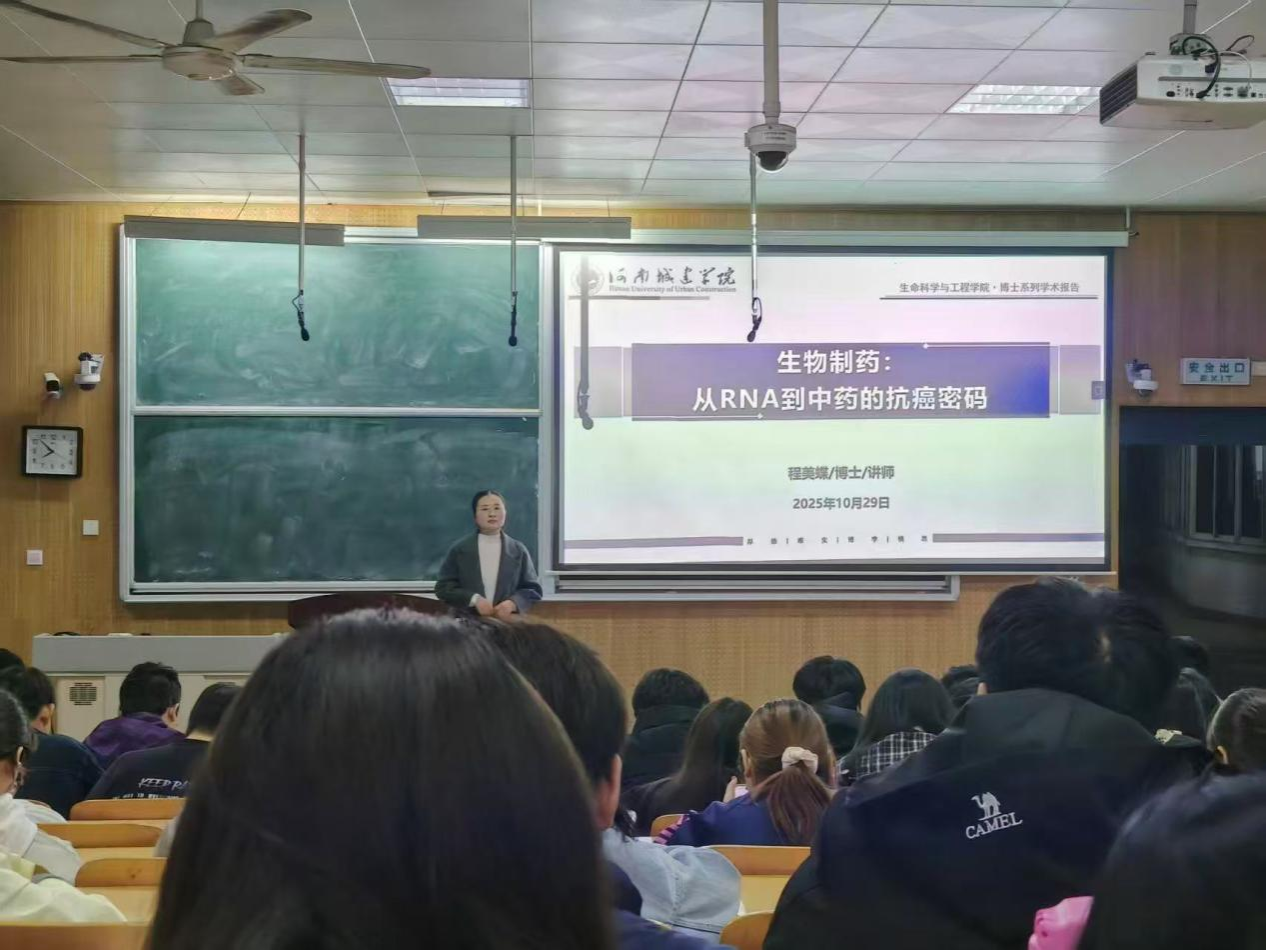 (通讯员 支双成)为帮助新生夯实专业基础、洞察学科前沿,10 月 29 日晚,betway西汉姆联平台“博士讲坛” 第八期顺利举行。程美蝶博士以《生物制药:从 RNA 到中药的抗癌密码》为题,为 2025 级生物制药专业新生带来一场兼具理论深度与实践价值的学术讲座。