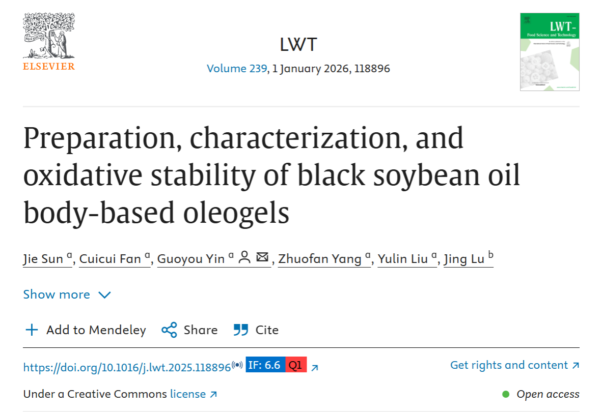 《LWT-Food Science and Technology》由Elsevier出版社主办,是农林科学与食品科技领域的国际权威期刊,收录于SCIE数据库,在国际食品科技界具有广泛学术影响力。