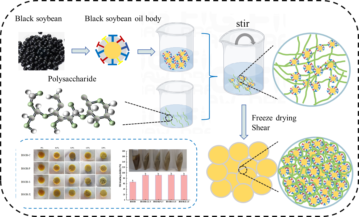 油体(OBs)是一类以蛋白质包裹液态油脂的天然乳液,凭借环保提取工艺、高营养价值与天然乳化特性,在食品工业中应用前景广阔。孙婕教授团队以黑豆油体(BSOB)为核心原料,采用静电沉积技术与乳液模板法,结合四种阴离子多糖制备出黑豆油体基油凝胶。该研究围绕黑豆油体基油凝胶的制备与理化性质展开,探索了阴离子多糖对黑豆油体基油凝胶的氧化稳定性,提出了以黑豆油体基油凝胶替代食品加工中饱和脂肪、反式脂肪的新策略,对推动功能性食品原料的绿色开发具有重要学术价值。