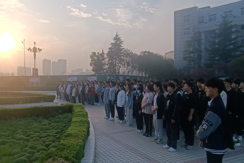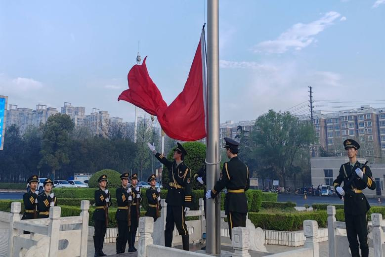 清晨的校园静谧而庄严,师生们精神抖擞,整齐列队站立。国旗护卫队迈着铿锵有力的步伐,缓缓走向升旗台。当庄严的国歌声响起,五星红旗在晨风中冉冉升起。全体师生肃立,面对国旗行注目礼