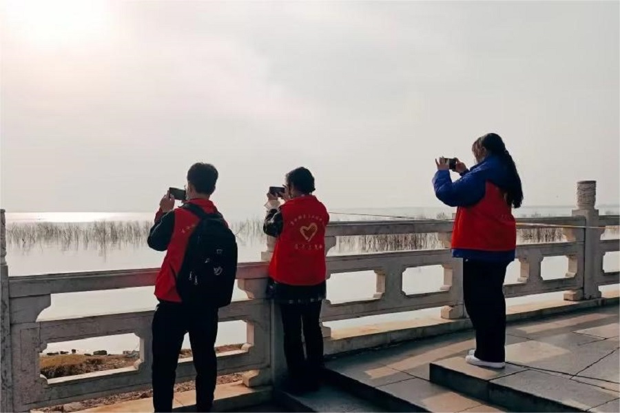 活动伊始,志愿者们在指导教师带领下,积极寻找、观察、拍摄记录鸬鹚、凤头䴙䴘、豆雁、中华秋沙鸭、青头潜鸭、黑鹳等多种国家重点保护鸟类。在此过程中,志愿者们将自身知识与活动见闻相结合,通过生动的讲解和互动,向公众科普鸟类知识,传播环保理念,用实际行动守护绿水青山。