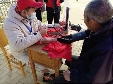 志愿者们为老人测血压