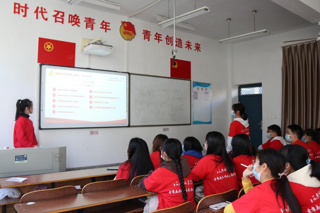 首先张漂漂同学从四个伟大成就、四个伟大精神方面,讲解学习科学发展观的重要作用,回顾了中国共产党的百年光辉历程。接着提出问题:展望中华民族伟大复兴的九个必须,加快青马班学员们跟随党的脚步,深化对伟大建党精神的深刻内涵和时代价值的印象,积极投入到中国共产党的不断发展中,成为时代的先锋。最后张欣悦同学通过习近平总书记的寄语:“新时代的中国青年要以实现中华民族伟大复兴为己任,增强做中国人的志气,骨气、底气。不负时代、不负韶华,不负党和人民的殷切期望!”引导当代青年投入到新时代中华民族伟大复兴的征程中。