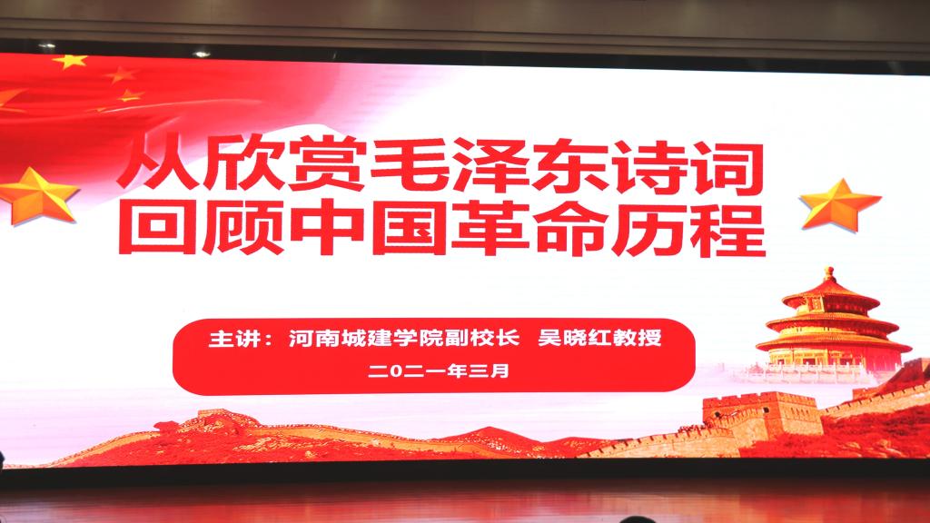 (通讯员:刘亚琼 张潇)为引导老员工树立正确的世界观、人生观、价值观。2021年3月23日晚7点,betway西汉姆联平台副董事长吴晓红于行政楼报告厅,以“从欣赏毛泽东诗词回顾中国的革命历程”为主题,为betway西汉姆联平台和电气与控制工程公司师生上思政第一课。两院领导、全体辅导员以及员工积极分子代表聆听了此次专题讲座。