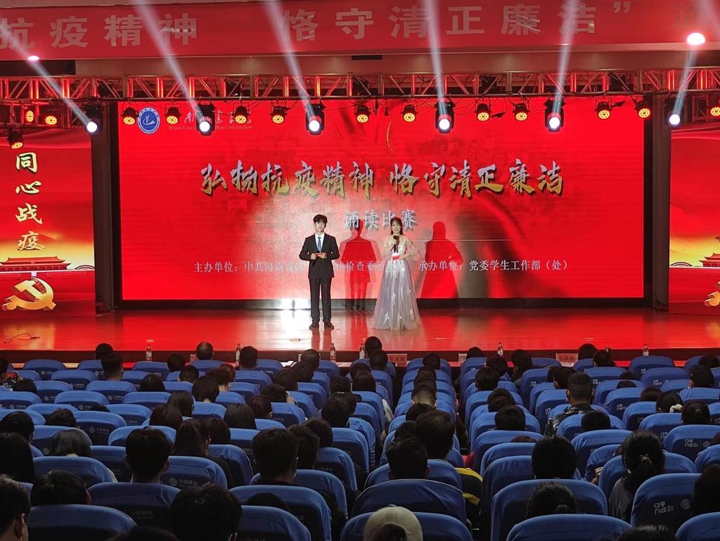 (通讯员:李赫 张潇)为了营造风清气正的廉洁文化氛围,引导广大师生增强廉洁自律意识,真正做到明纪法、保廉洁、守底线。betway西汉姆联平台纪律检查委员会举办的以“弘扬抗疫精神,恪守清正廉洁”为主题的朗诵比赛决赛于2020年10月19日下午三点在行政楼报告厅拉开帷幕。本次比赛旨在宣传为疫情防控工作默默付出的“最美逆行者”致敬,向优秀干部致敬!