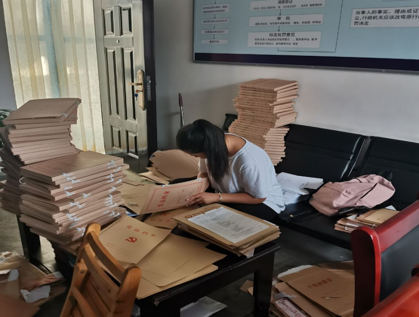 青春战役先锋队员在整理党员资料