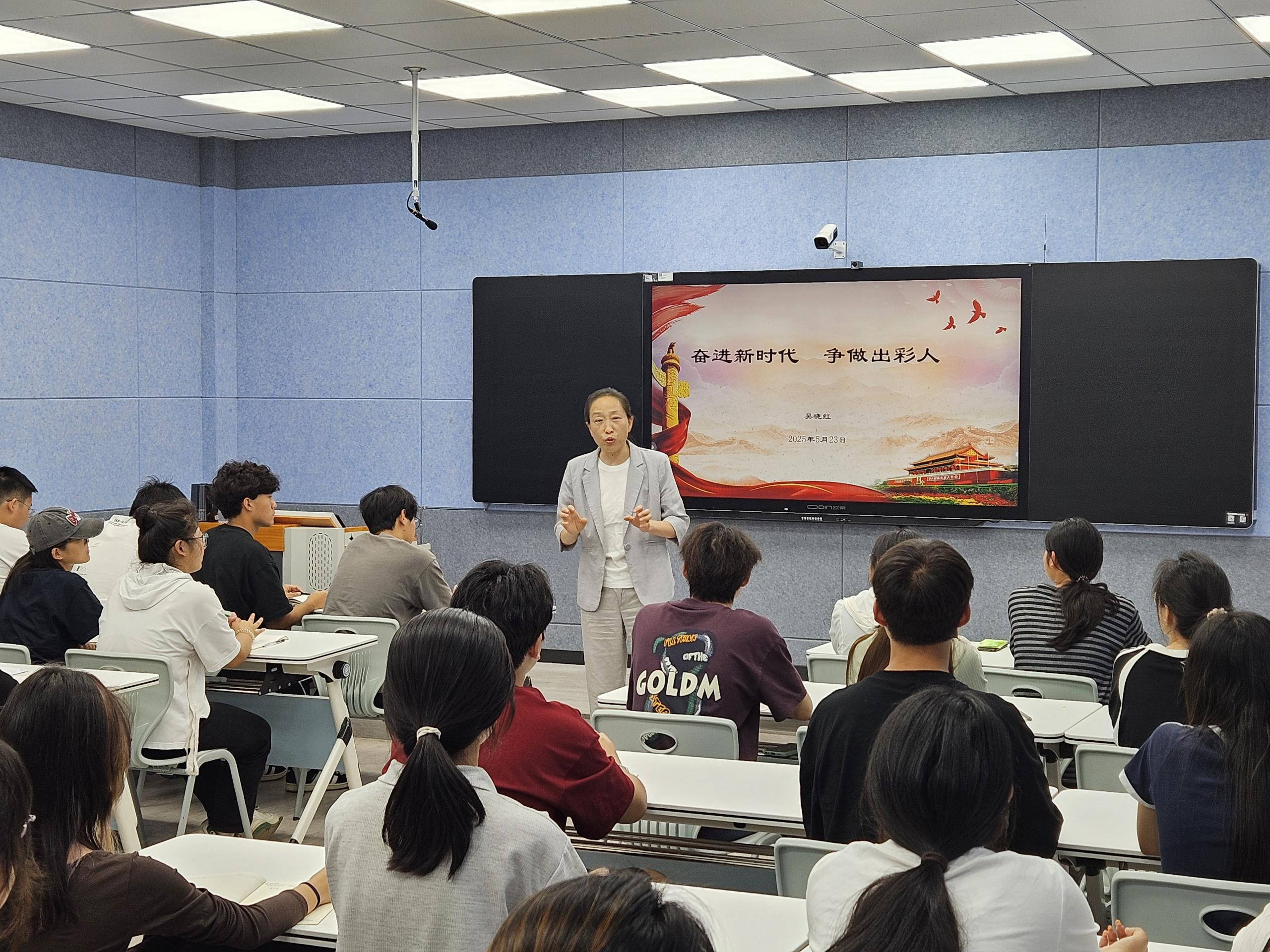 吴晓红强调,当前世界百年变局加速演进,全球经济重心东移趋势显著,国际秩序重构持续深化,地缘冲突与贸易壁垒相互叠加。作为新时代的青年,如何肩负起历史使命,她提出三点希望:一要立鸿鹄志,筑牢信仰根基。坚定理想信念,将个人理想主动融入国家发展,实现个人与国家的同频共振。二要练真本领,锤炼实干品格。勤奋学习专业知识,积极拓宽知识面,培养创新思维,在AI赋能等新兴领域大胆探索,提升自身核心竞争力。三要勇挑重担,践行时代使命。积极参加社会实践,在实践中锤炼品德修养,培养坚韧不拔的意志品质,在奋进新时代的征程中,争做有理想、敢担当、能吃苦、肯奋斗的出彩青年。